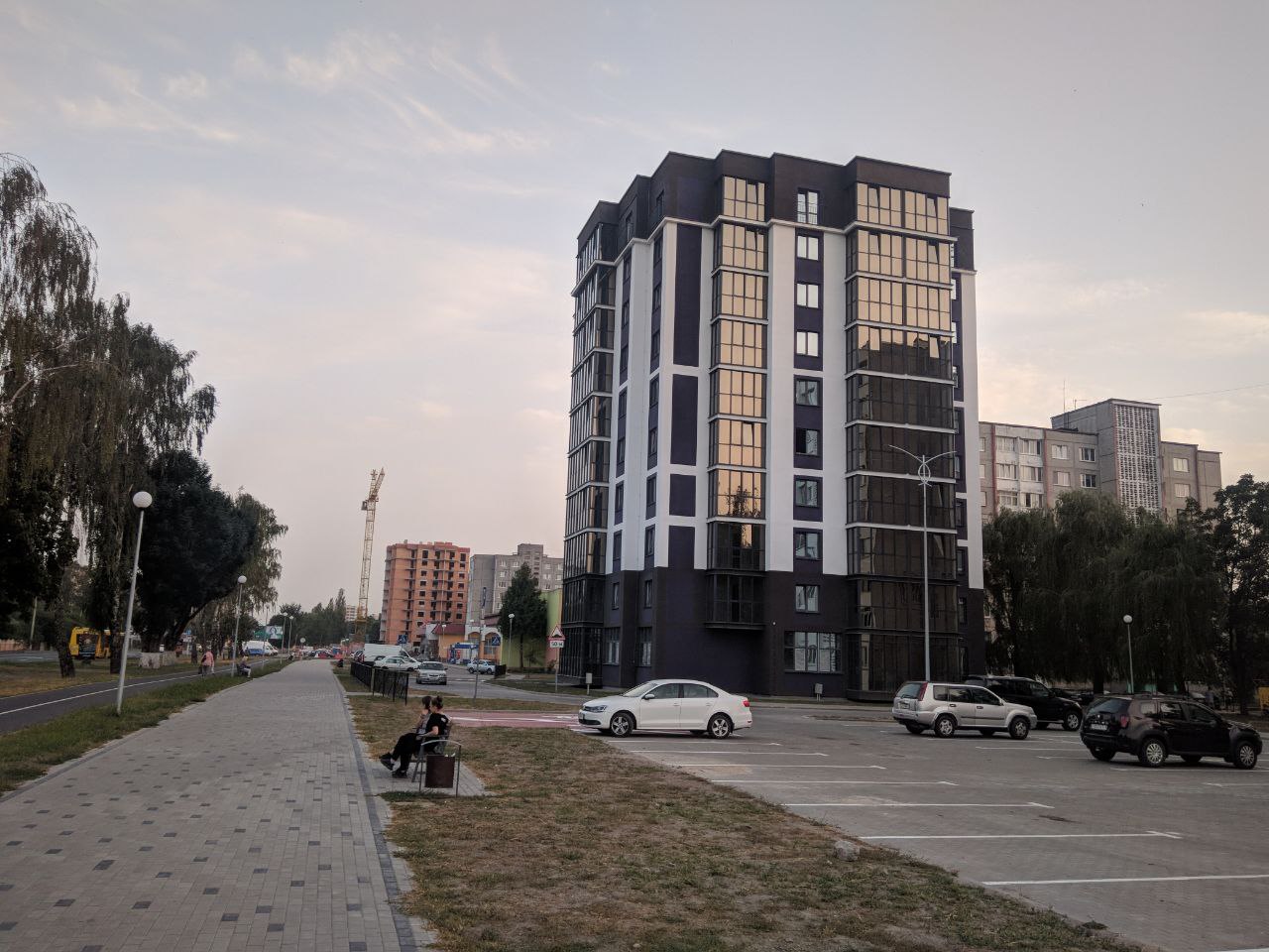 А меня просто до белого каления бесит стрижка газонов, результаты которой можно видеть в центре фотографии. Траву косят под ноль, из-за чего она хуже затеняет почву. Почва сильнее нагревается и быстрее теряет влагу, из-за чего ухудшаются условия для роста травы, и она становится ещё реже, что ведёт к ещё более сильному нагреву и ещё более быстрой потере влаги. Возникает замкнутый круг.