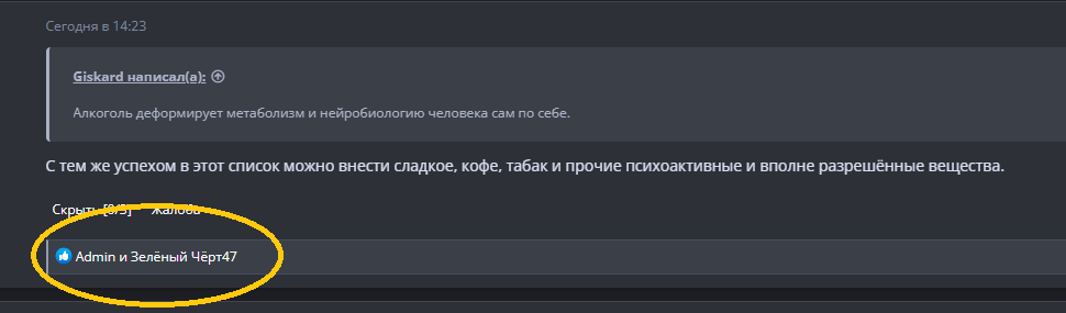 Обратите внимание, как лайкаются сообщения, представляющие собой стереотипную апологетику употребления зелья, способного превратить Человека в бессмысленное хрюкающее существо, и как пустынна область оценок под сообщением, развенчивающим эти шаблоны и прославление алкоголя: