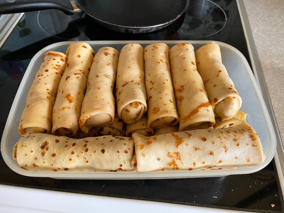 У Глю блины красивее )Тоже решили заморочиться, купили 5 кг мяса, по итогу вышло 53 блинчика с мясом, с икрой я так и не понял вкуса.