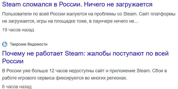Стиму нынче совсем плохо, ещё со вчерашнего вечера. Причём не только в России, вопреки заголовкам.