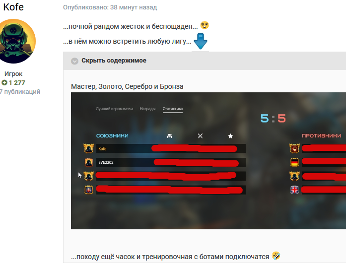 Боты и мульты-статисты уже давно не только в игре, но и на форуме. Все эти "круто", "класс" и прочие немногословные возгласы тружеников 18 рублей нескольких виртуальных кристаллов за пост. Виртуальный игровой процесс, виртуальная активность на их форуме, виртуальные донаты на стримах школоютуберов. Удивляюсь, как на видео с танковстречь не подрисовывают массовку или не делают спецмонтаж для имитации "пришло много народу" - врать, так уж полностью.