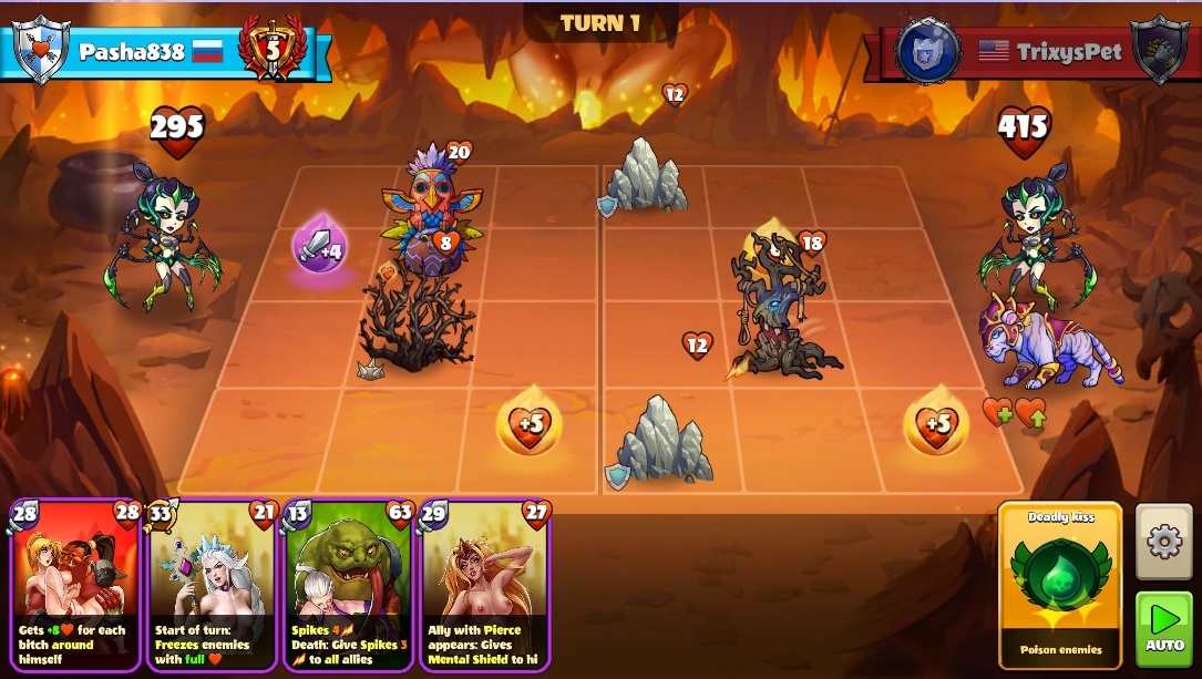 С живыми игроками сложнее. Обыгрываются легко только или нубы, или, возможно, боты-подмена, когда игроков мало. Чуть в сторону нормальных игроков - уже тяжко. Мой набор для медведя явно слабоват, колода качалась под Трикси.