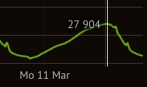Ещё на тыщу. Это уже немного меньше, чем я предсказывал Обсуждение игры. Сейчас онлайн примерно как в конце мая 2018 Обсуждение игры. Следующие реперные точки - начало (35к) и конец апреля (31к). Затем первая половина мая после праздников (примерно 28к) и вышеупомянутый конец мая (26к). Затем примерно на этом уровне (26к) Альтернативе удалось стабилизировать онлайн на лето (все помнят, благодаря чему? - каждые две недели всякие безумные выходные) - смогут ли сейчас? Не думаю. Придётся по три-четыре акции перекрывающихся делать, чтобы кто-то польстился всё лето зад просиживать за этой помойкой при онлайне таком мизерном, что заброс мультов будет идти успешно всего лишь с одной группой (а не двумя-тремя, как раньше).